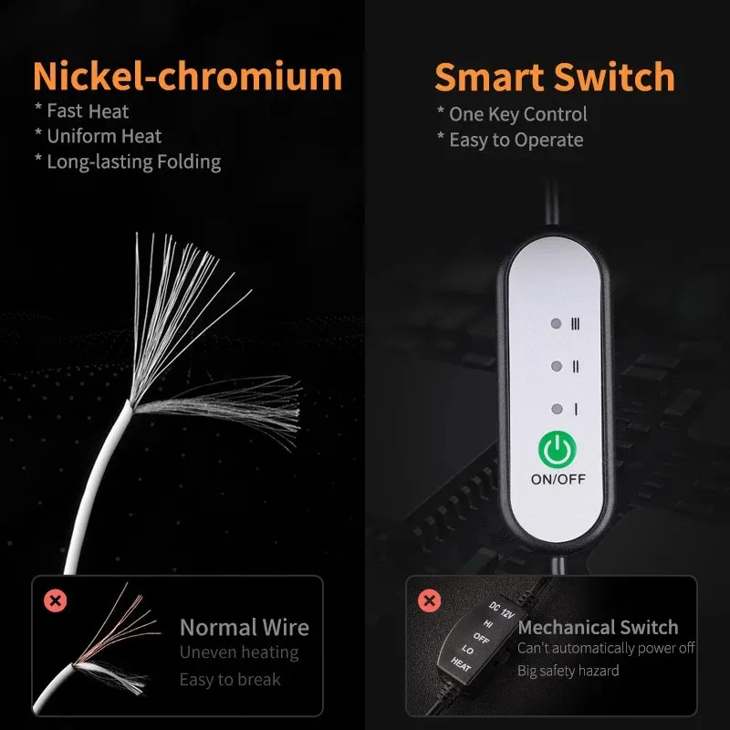 2. Compare with mechanical switch, our heated seat covers are designed with smart switch which are one-key control and easy to operate.